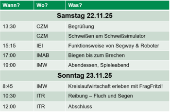 Für das vielfältige Programm und die Unterstützung durch das zentrale Hochschulmarketing bedanken wir uns herzlich beim: ISAF, IEI, IMAB, ITR, zentralen Hochschulmarketing