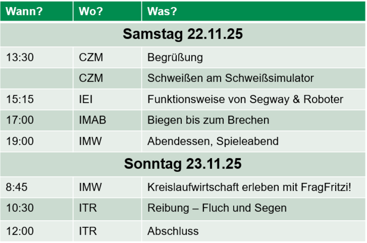 Möchtest auch DU das IMW und den Maschinenbau kennenlernen? Kontaktiere uns gerne unter: office@imw.tu-clausthal.de oder melde dich zum nächsten Girl‘Day2026 zeitnahbei uns an.