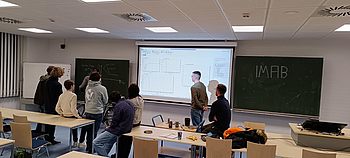 Im IMW wurde nach dem Pizzaessen verschiedene Prüfstandkonzepte anhand der Prüfstände des Instituts diskutiert und anschließend haben die Teilnehmer an einem Bastelwettbewerb ihre Kreativität zeigen können. Die gebastelten Katapulte wurden anschließend im Weitschuss-Experiment getestet.