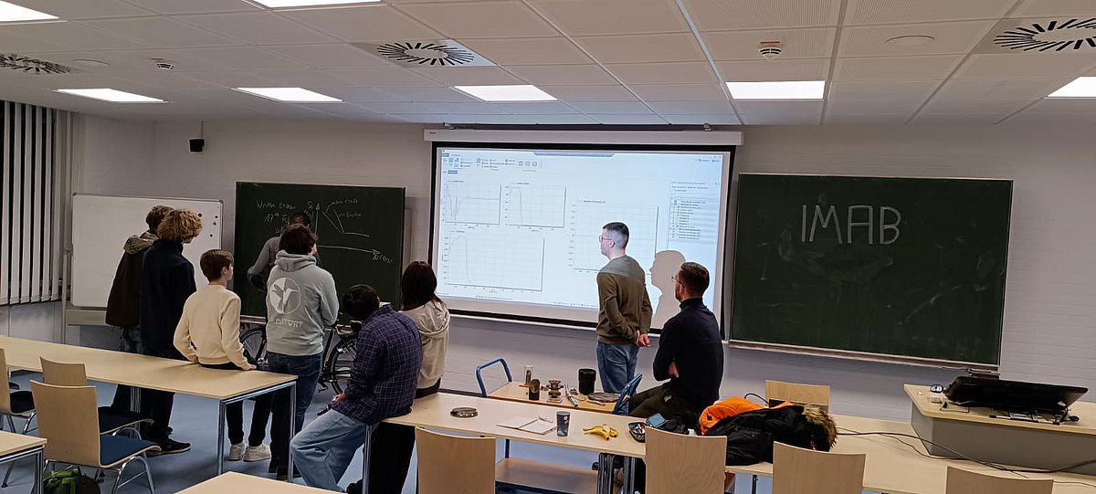 Am IMAB ging es um das Messen und Beurteilen von dynamischen Belastungen auf ein Fahrrad. Um diese sichtbar zu machen, konnten die Schüler:innen selber in die Pedale treten und ein eigenes Lastprofil aufnehmen.