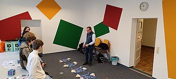 Nach einer Übernachtung in der Akademie des Sports ging es mit dem Spiel FragFritzi! am IMW mit Fragestellungen wie „Auf welche Weise entsorge ich mein Handy am besten?“ weiter.